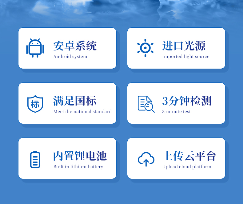 適用于純凈水廠、自來(lái)水廠、生活污水處理廠、工業(yè)污水、水產(chǎn)養(yǎng)殖、河流監(jiān)測(cè)、游泳場(chǎng)館、水源保護(hù)、生產(chǎn)監(jiān)測(cè)、科研實(shí)驗(yàn)等。
