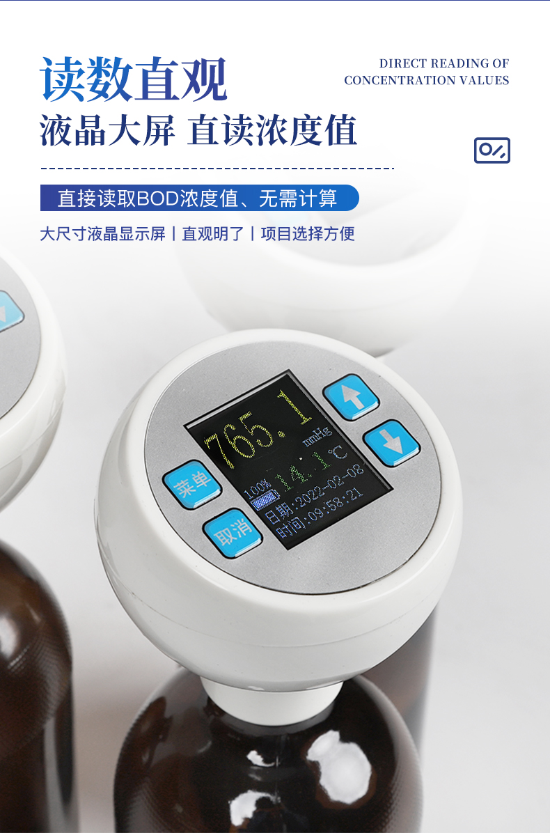 1. 可同時測量六個樣品; 2. 六個獨立測試終端,在檢測過程中可隨時加入新的測量組; 3. 直接讀取BOD濃度值、無需計算; 4. 無汞壓差設計,精度高,無需換算,且保證實驗人員安全健康; 5. 實驗環(huán)節(jié)無管路設計,避免管路老化、漏氣等弊端; 6. 測量范圍可選擇,在水樣濃度低于4000g/L時,無需稀釋; 7. 測定儀自動記錄測量數(shù)據(jù),一個測試周期可選60個采樣點、檢測數(shù)據(jù)更**; 8. 培養(yǎng)周期可調節(jié),根據(jù)需求可以選擇; 9. 自動完成測量過程,無需專人值守; 10. 大尺寸液晶顯示屏,直觀明了,項目選擇方便; 11. 測試終端自帶大容量電池,電池壽命2年以上,測試過程中不受外部環(huán)境短期斷電影響; 12.記錄頻率2h記錄一次.