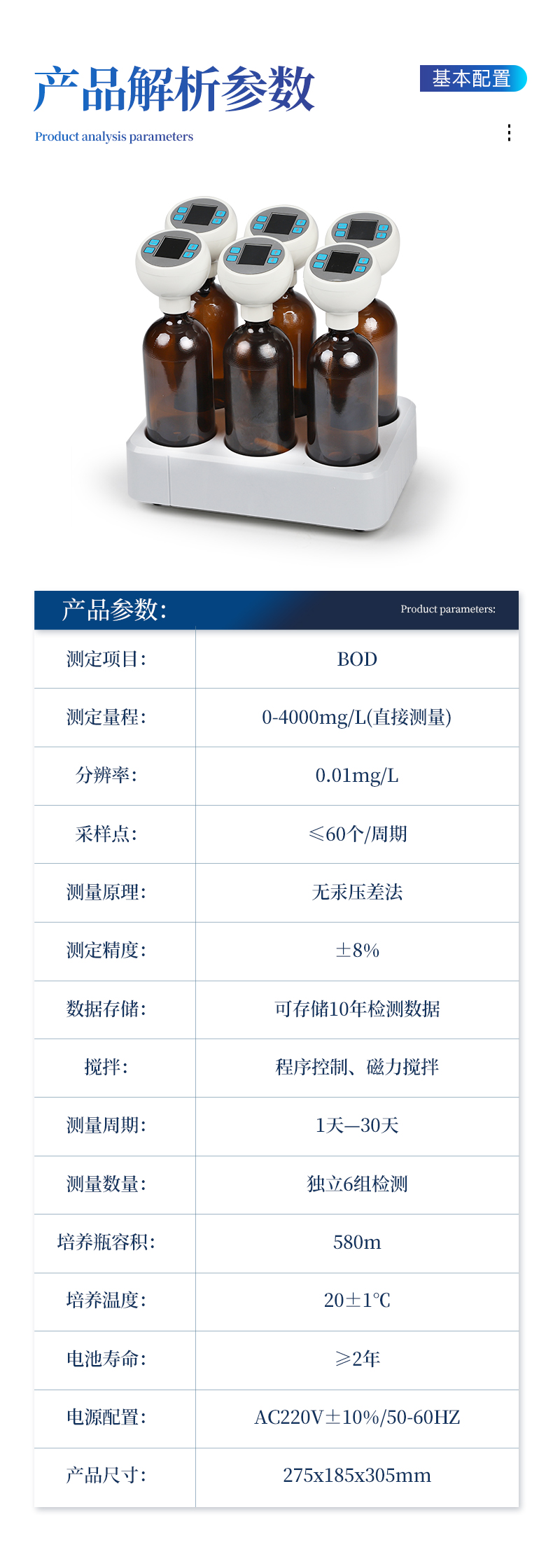 BOD生化需氧量測定儀是根據(jù)國家標準《HJ505-2009》5日培養(yǎng)法,模擬自然界中有機物的生物降解過程,采用簡單、安全、可靠的無汞壓差感測法測量水中BOD;全智能化設計,**的研發(fā)工藝和設計制造,實驗過程無需實驗人員值守;適用于排污企業(yè)、環(huán)境監(jiān)測、污水處理廠、第三方檢測機構、科研、高校等領域的生化需氧量測定。