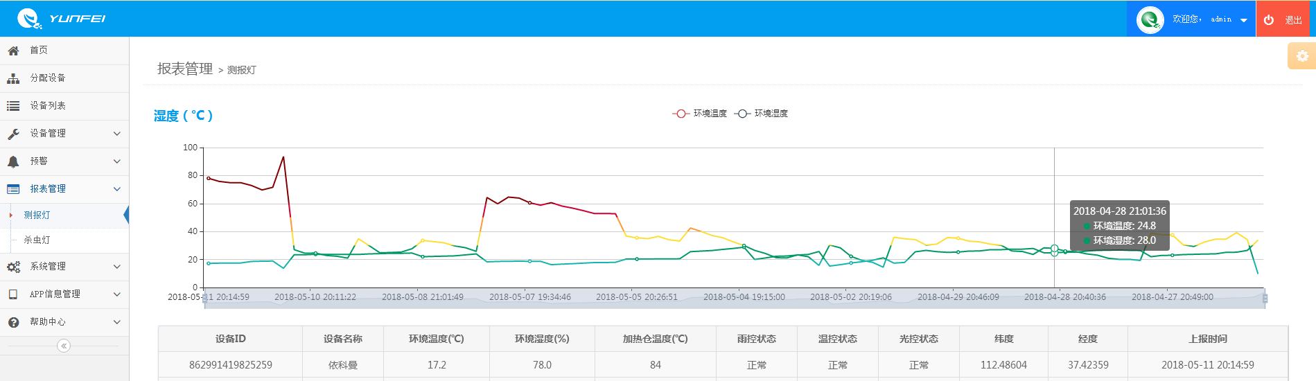 拍照式太陽(yáng)能全自動(dòng)蟲(chóng)情測(cè)報(bào)燈 YT-CQ04 軟件平臺(tái)界面: