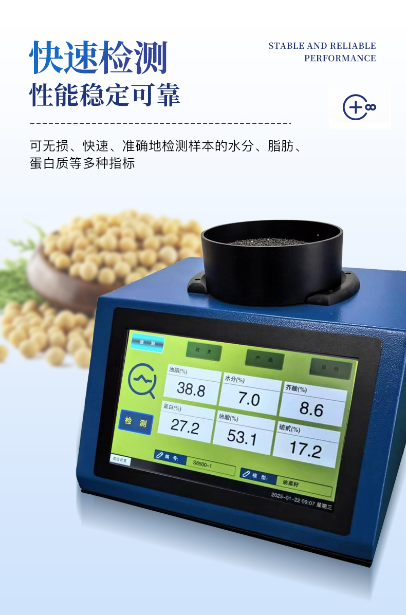 近紅外光譜分析儀,是針對(duì)原糧、食品、飼料等行業(yè)開(kāi)發(fā)的專(zhuān)用 檢測(cè)設(shè)備,可無(wú)損、快速、準(zhǔn)確地檢測(cè)樣本的水分、脂肪、蛋白質(zhì)等多種指標(biāo)。