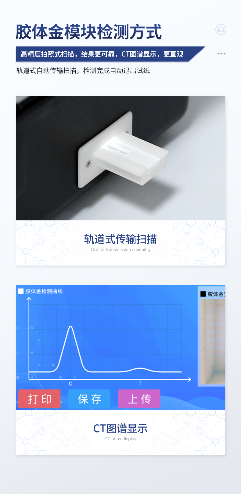 | 安卓智能操作系統,采用更加**的UI交互界面,儀器具有wifi聯網上傳、4G聯網傳輸、GPRS無線遠傳、網線連接功能,快速批量上傳數據。 | 智能化程度高,儀器具有自檢功能:具有開機自檢和調零功能,具有自動檢測重復性功能。 | 新一代高速熱敏打印機,檢測完成可自動打印或批量打印檢測報告和二維碼。 | 儀器帶有監管平臺,數據可局域網和互聯網數據上傳,檢測結果直接傳至食品安全監管平臺。進行區域食品安全監管及大數據分析處理與數據統計,檢測區域食品安全長短期動態,達到食品安全問題預估、預警 | 一體化主機,包含食品安全檢測模塊、多通道農藥殘留檢測模塊、膠體金免疫層析檢測模塊。 | 一體化便攜式快檢設備,滿足現場及流動檢測使用需求,能夠在同一軟件下實現所有檢測項目的檢測,并可通過同一窗口直觀顯示檢測結果。 | 膠體金模塊檢測方式:軌道式自動傳輸掃描,檢測完成后自動退出檢測卡。 | CT線自動識別,無需手動調整。 | 內置強大的數據庫,具有多品類多種類樣品菜單功能,可靈活選擇檢測樣品,不同的檢測通道可同時檢測不同的樣品項目。也可在儀器上直接編輯錄入樣品名稱、檢測指標、送檢單位等信息并保存進樣品數據庫。 | 產品內置操作演示視頻,是您身邊的化驗指導專家。 | 樣品處理簡單省力,整體操作快速、安全、便捷。 | 儀器具有自身保護功能,可設置用戶名及密碼,防止非工作人員操作等。 | 高靈敏度,高檢測精度,高重復性精度,掃描式高精度光學傳感器。 | 結果判定線可修改,對照值標定值可保存,斷電不丟失數據。 | 兼容市場上所有的膠體金卡,使用耗材不受限制,極大增強用戶使用體驗。 | 儀器具有重新校準、鎖定、恢復出廠設置功能。 |