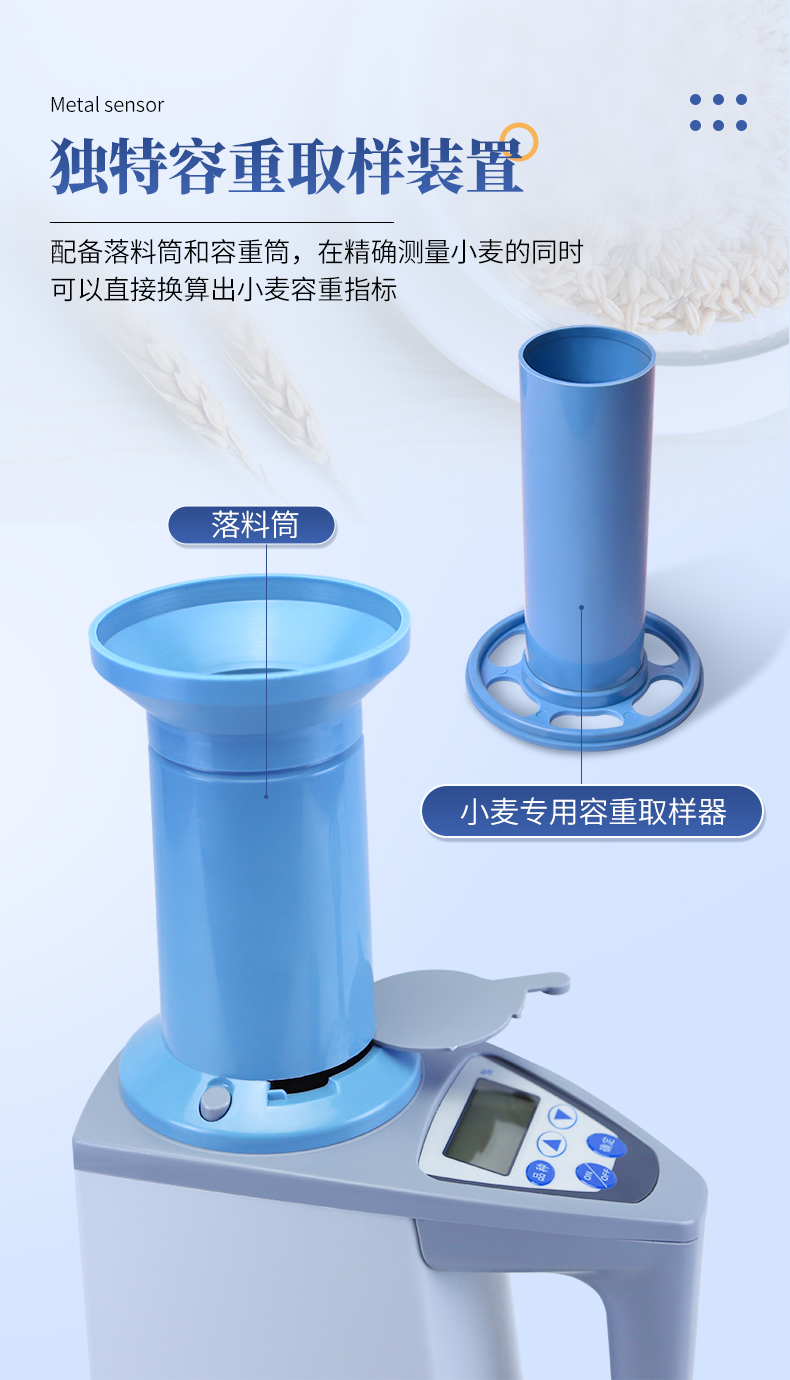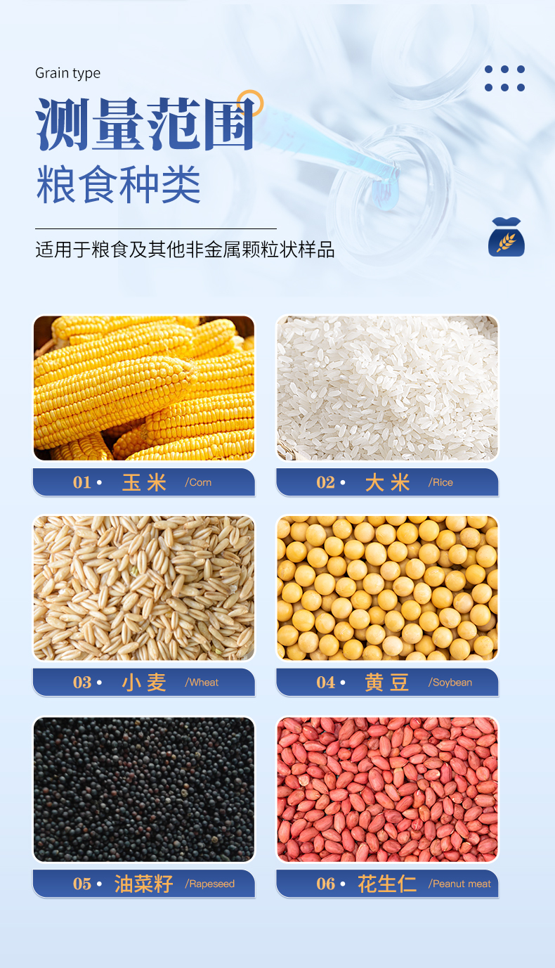 | 容重換算:獨特的專利容重取樣裝置在**測量小麥的同時,可以直接換算出小麥容重指標。 | 測量范圍:可測量谷類、玉米、東北玉米、大麥、小麥、白小麥、大米、豆粕、花生仁、菜粕、高粱、黑芝麻、棉籽、棉粕、秈谷、大豆、油菜籽、飼料、蔬菜種子等非金屬顆粒狀物質。 | 快速準確:數(shù)秒內即可顯示結果,測量誤差≤±0.5℅ | 操作簡單:20個常見品種已預先定標,不需秤樣、用料簡取樣后可立即測量水分 | 水分測量范圍:3-35℅ | 使用環(huán)境溫度:0~40℃ | 溫度補償:自動 | 定 標:浮動四點定標,品種不限(常見品種20個已預先定標,可直接測量) | 工作電源,直流6V(5號干電池四節(jié)) | 自動關機:超過三分鐘無操作自動關機。 | 便攜方便:重約1千克、外型小巧、電源交直流二用,適合各種工作場合 | 適合國情:用戶可對本地特殊品種采用本機獨創(chuàng)的四點定標法自行定標,自行修正水分值 | 高性價比:技術含量高,性能**而價格相比同類產品較低。 |