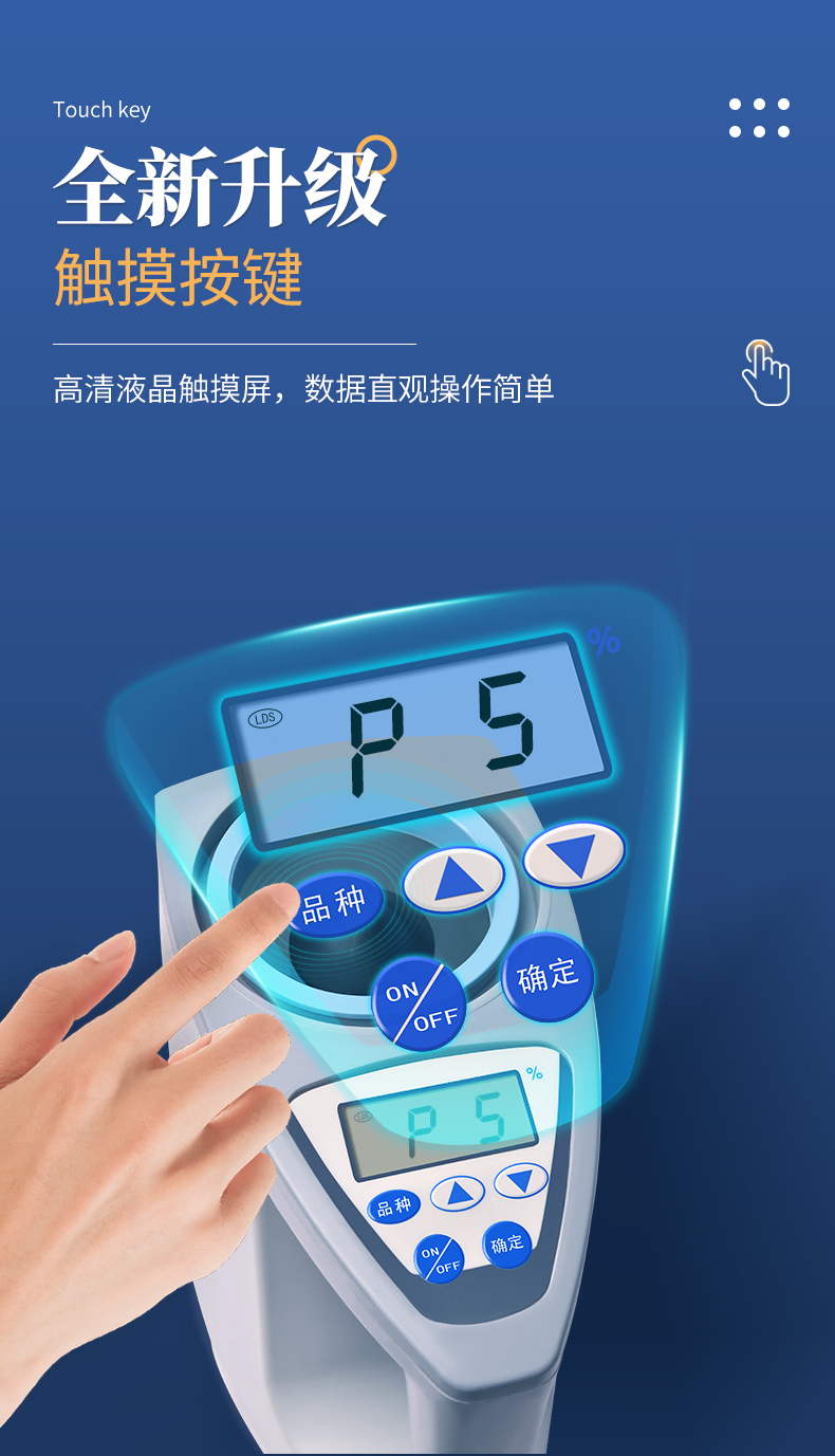 YT-L80型糧食水分測定儀是老型糧食水分測定儀的升級產品、在原來的基礎上增加了自動累加測量次數(shù),計算平均值功能和容量自動換算顯示功能,其性能更穩(wěn)定可靠,擁有外觀設計國家專利,外形新穎美觀,完**與國外同類產品媲美,是水分測量儀器理想的升級換代產品。