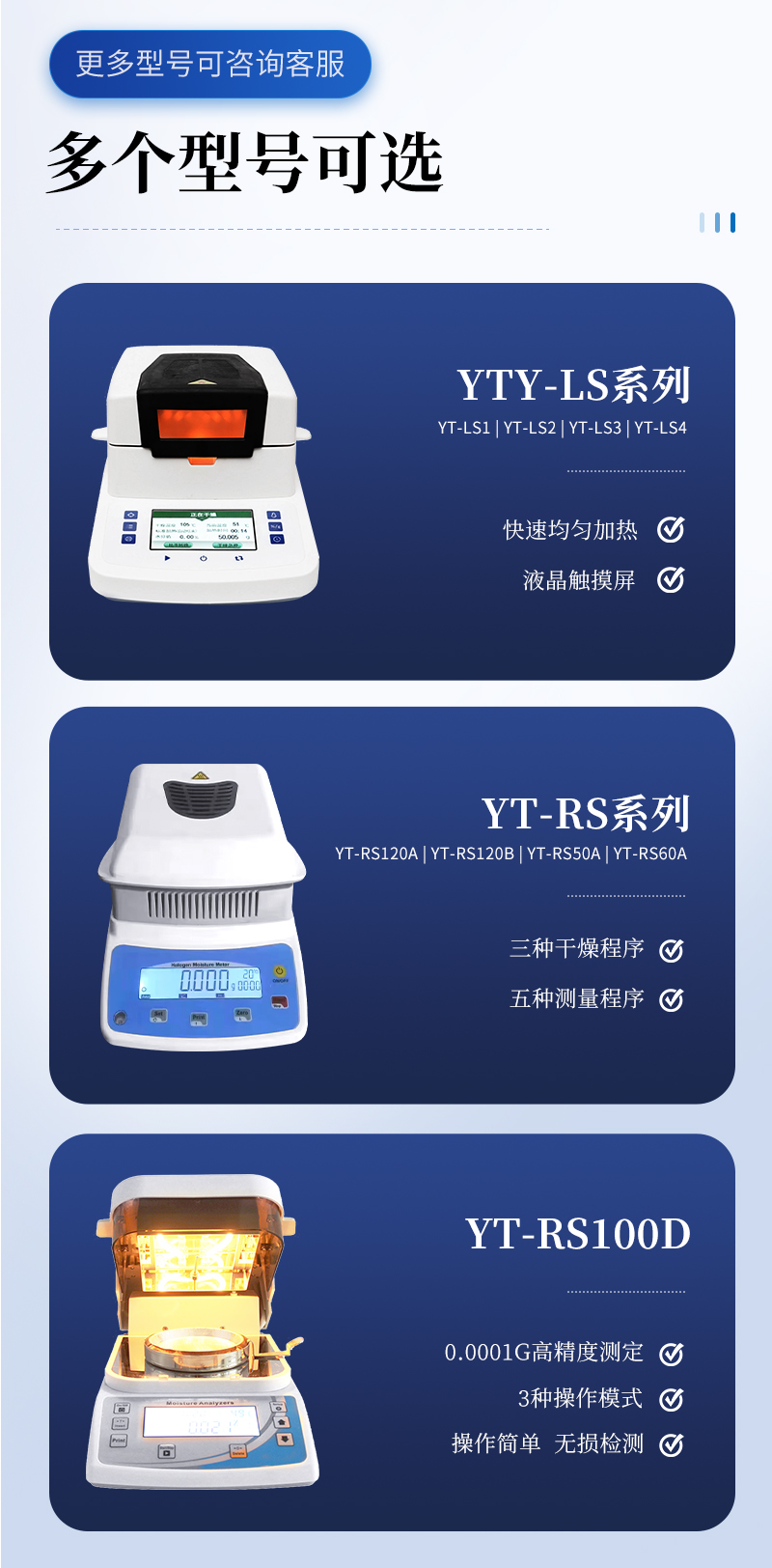 | 型號 :YT-RS120A,**稱量值:120g ,顯示分度值:0.001g,可 讀 性 :0.01% | 型號 : YT-RS120B,**稱量值:120g ,顯示分度值: 0.002g ,可 讀 性 :0.01% | 型號 : YT-RS50A,**稱量值:120g ,顯示分度值: 0.005g ,可 讀 性 :0.01% | 型號 : YT-RS60A,**稱量值:120g ,顯示分度值: 0.01g ,可 讀 性 :0.1% | 加 熱 源 鹵素?zé)? 溫度設(shè)置 室溫- 180℃ | 數(shù)據(jù)保存 16組 重量校準(zhǔn) 100g | 稱盤尺寸 φ110 (mm) | 外形尺寸 (D*W*H)330*205*165(mm) | 包裝尺寸 (D*W*H)410*315*335 (mm) | 凈 重 3.2kg 毛 重 4.6kg |