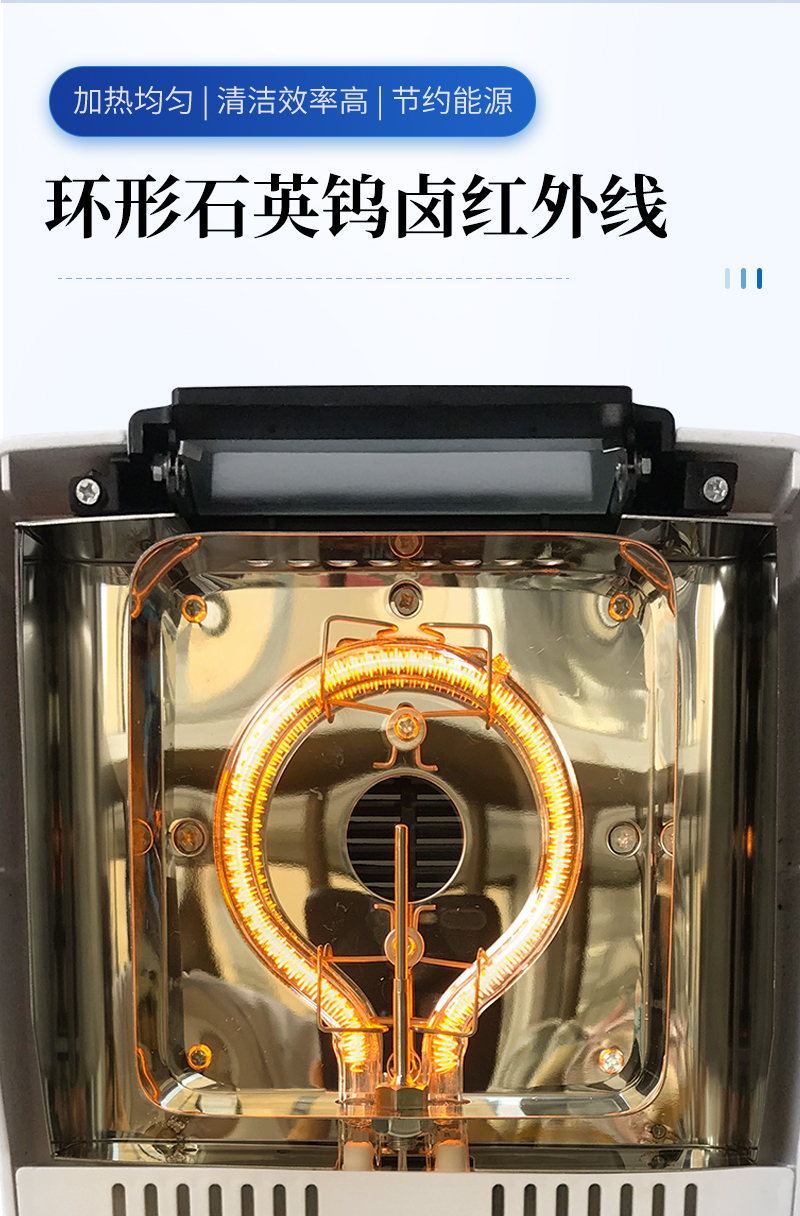 | 鹵素燈加熱 Halogen light heating | 不銹鋼加熱腔體 Stainless steel chamber | 溫度/時間可調 Temperature and time can be set | 百分比顯示水分含量 The percentage of moisture content | 百分比顯示干燥余量 The percentage of dry residual | 液晶觸摸屏 LCD with touch scretorical setting |