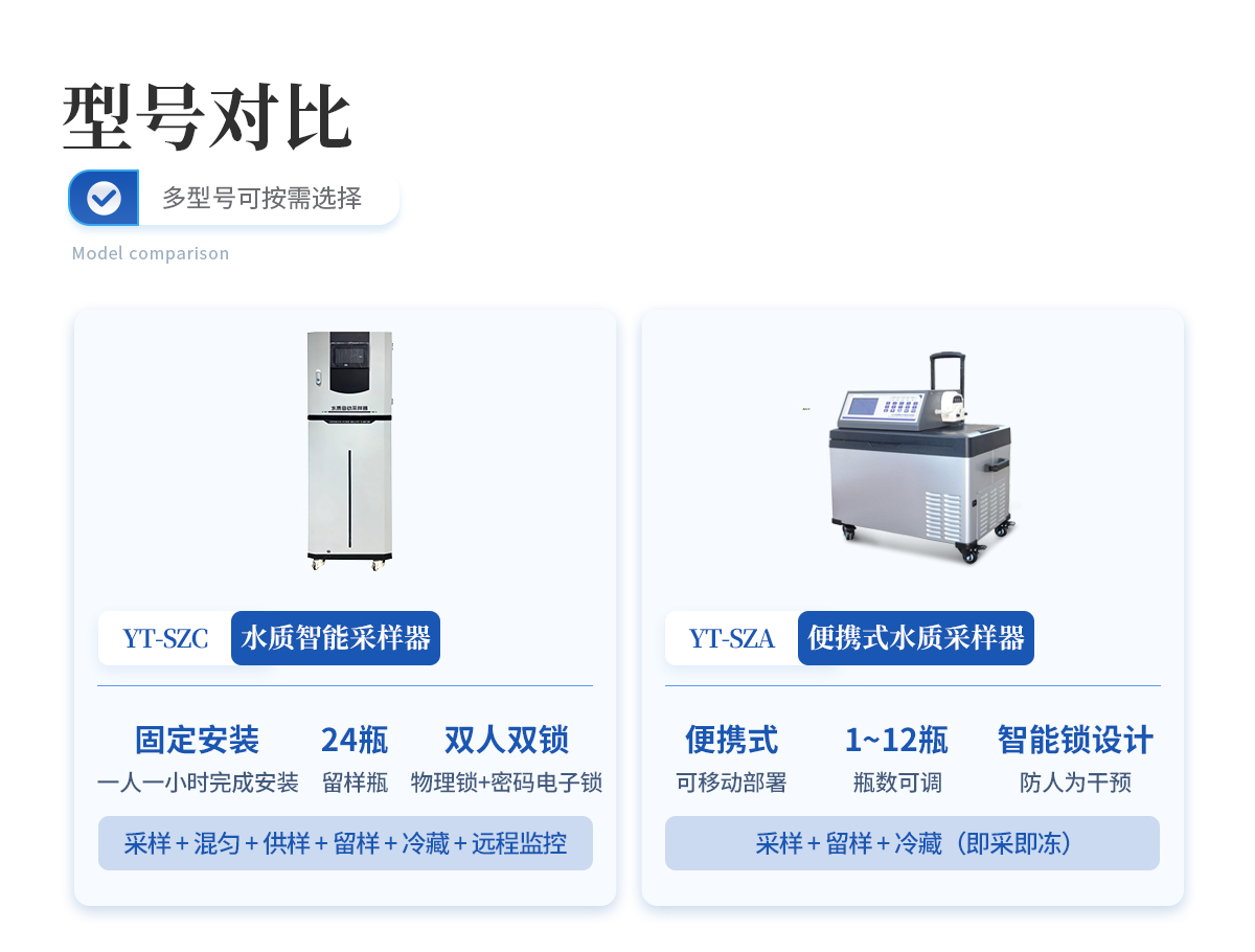 YT-SZC水質自動采樣是一款具有水樣采集、分析供樣、水樣保存、動態管控等功能的連續自動采樣器。滿足HJ 372-2007《水質自動采樣器技術要求及檢測方法》,適用HJ 353、354、355系列標準,符合HJ 212-2017《污染源在線自動監測系統數據傳輸標準》相關要求,參照HJ 493-2009《水質采樣樣品的保存和管理技術規定》,能夠滿足且高于污染源在線監測的采樣需求,同時適用于智慧水務、緝毒采樣、病毒采樣、地表水采樣等。