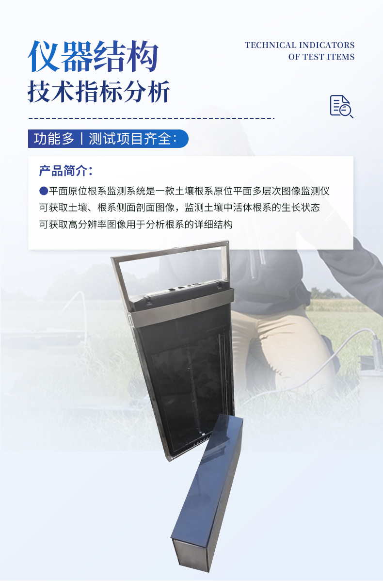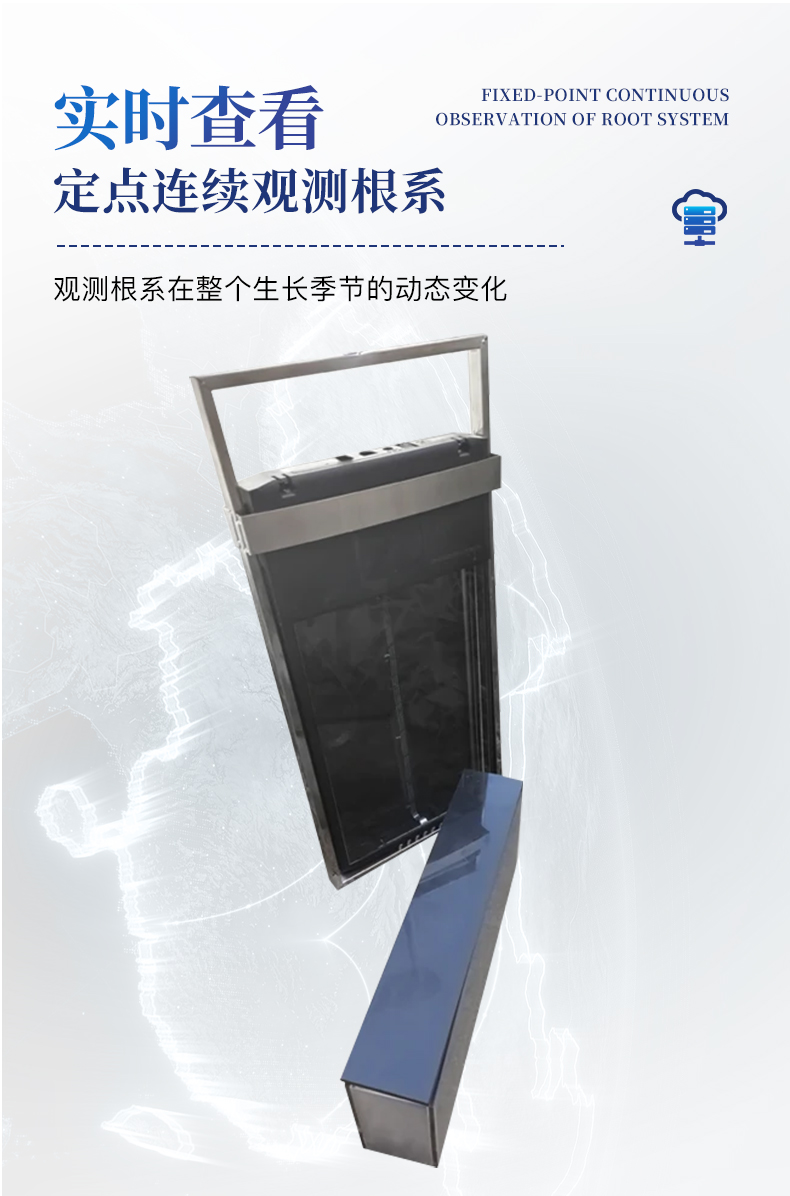 平面原位根系監測系統是一款土壤根系原位平面多層次圖像監測儀,可獲取土壤、根系側面剖面圖像,監測土壤中活體根系的生長狀態,可獲取高分辨率圖像用于分析根系的詳細結構。