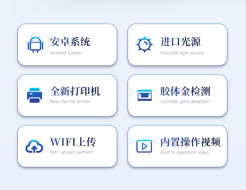 | 主控芯片采用32位處理器,運轉速度更快,穩定性強。 | 直流12V供電,可連接車載電源。 | 光源亮度自動調節與校準 | 脈沖式恒流驅動,避免連續發光引起光衰和溫漂。 | 可設置密碼登錄 | 不間斷進樣,連續檢測 | 樣本編號自動累加。 | 檢測項目可擴充。 | 檢測結果可批量打印,批量上傳。 | 檢測結果為Excel表格,連接電腦即可拷貝。 | 檢測結果存儲容量20萬條 | 固件可升級 |