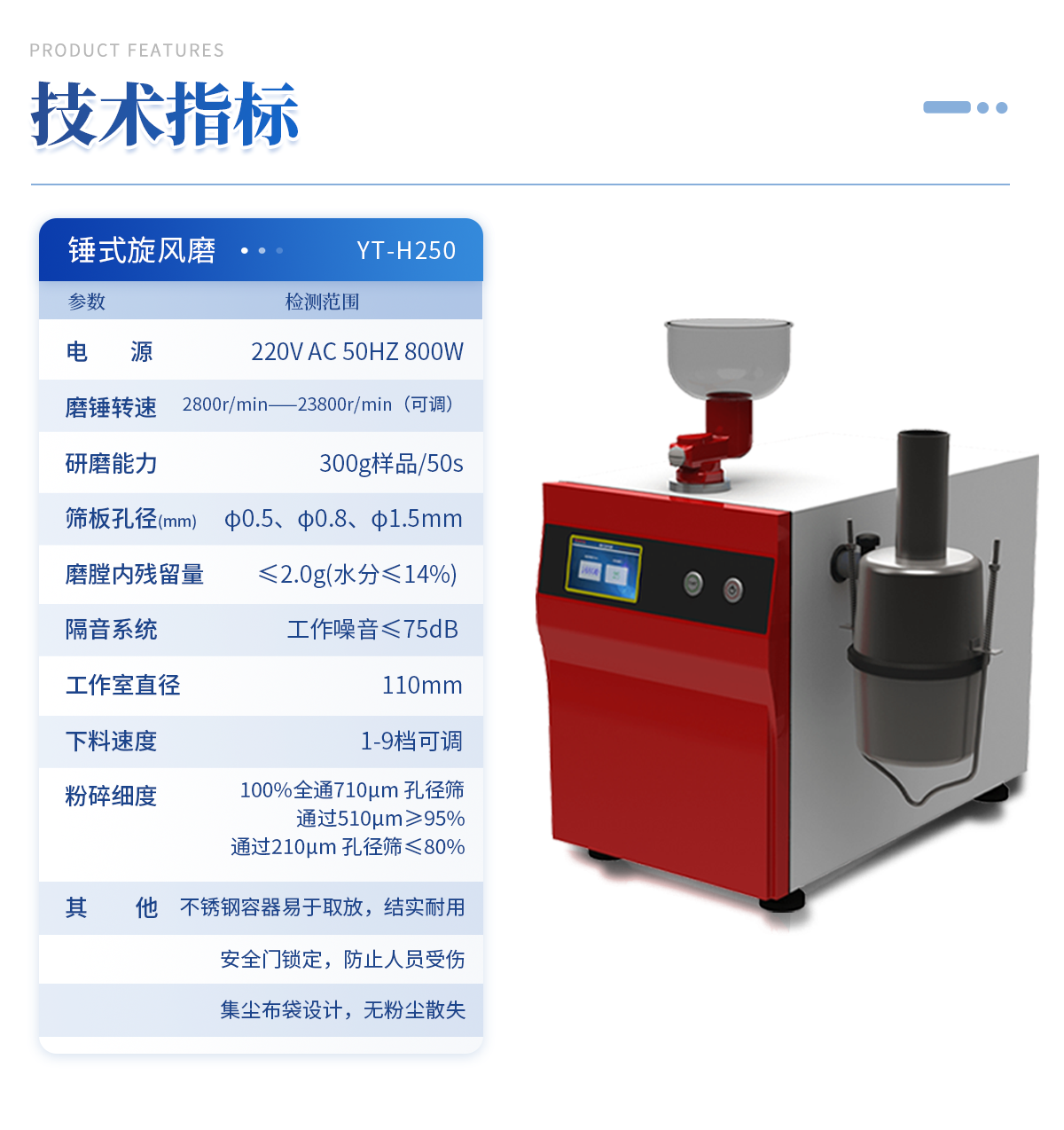 錘式旋風磨 YT-H250 技術參數
