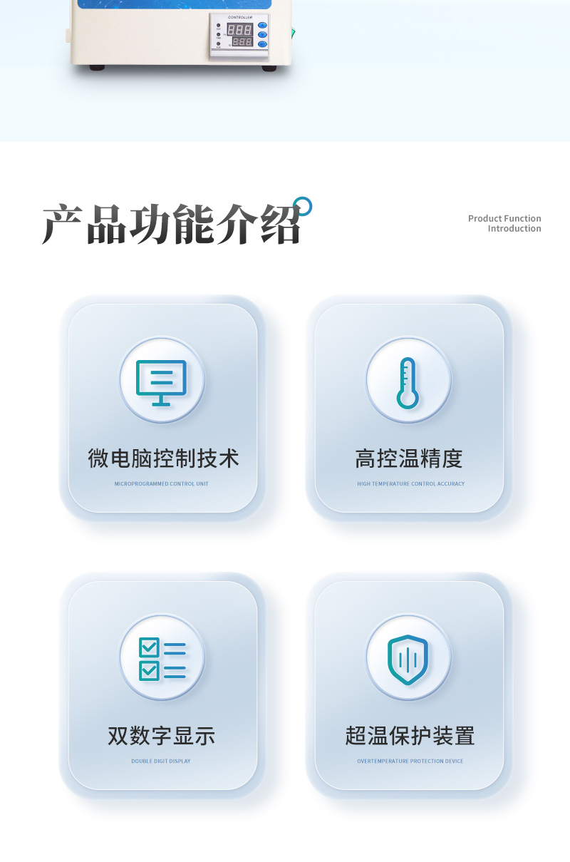| YT-D12(12孔) | 12個 | Ф16mm | 150W | 0-15L/min | 試管架一個 | ±0.5℃ | 室溫+5℃~150℃ | 數(shù)顯控溫 | 280mm*240mm*500mm | 7KG |