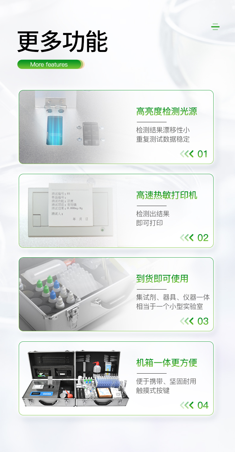★全國獨家《機箱/藥劑一體式鋁合金機箱》專利設計,便于攜帶、堅固耐用,配套檢測方法及成品藥劑。