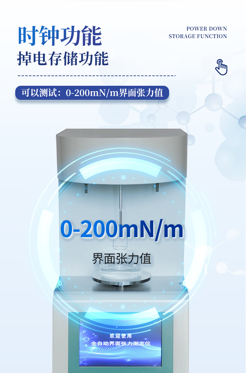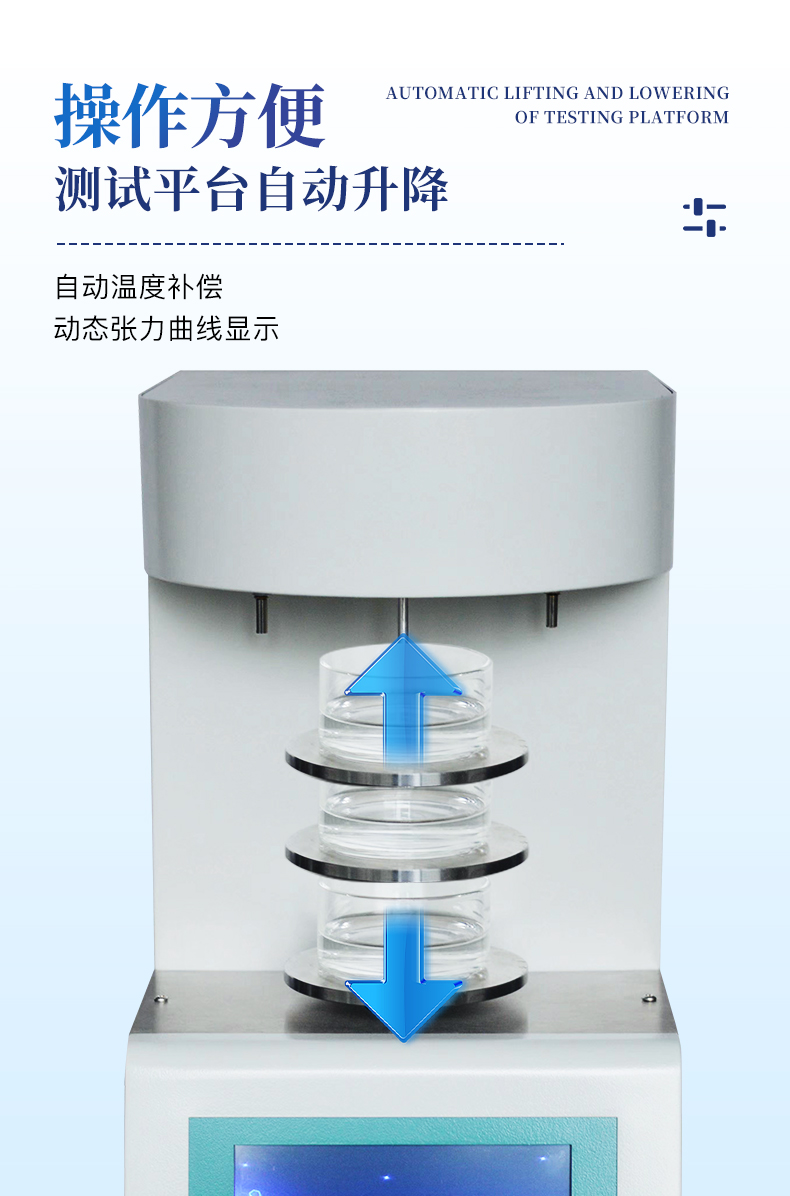 | 儀器采用等一點標定,簡單方便,保證測量精度; | 自動溫度補償;動態張力曲線顯示; | 時鐘功能,掉電存儲功能; | 高清晰彩色觸摸屏,操作更加方便; |
