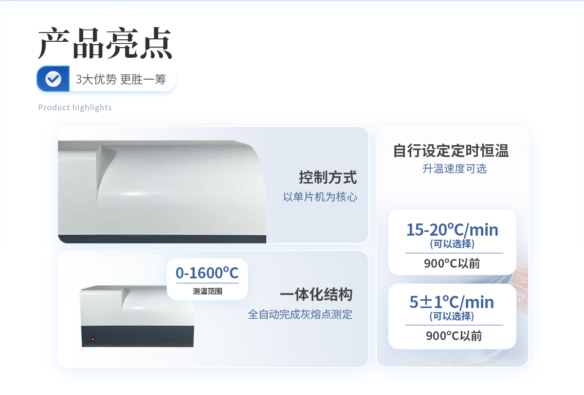 產(chǎn)品介紹: 產(chǎn)品簡(jiǎn)介:灰熔點(diǎn)測(cè)試儀與硅碳管高溫爐配套,是化驗(yàn)室進(jìn)行煤灰熔融性測(cè)定的智能化儀器.該儀器嚴(yán)格按照國(guó)標(biāo)有關(guān)規(guī)定全自動(dòng)完成灰熔點(diǎn)測(cè)定.可以在一定范圍內(nèi)對(duì)控制參數(shù)進(jìn)行選擇和修改,還具備可以自···2025-10-26