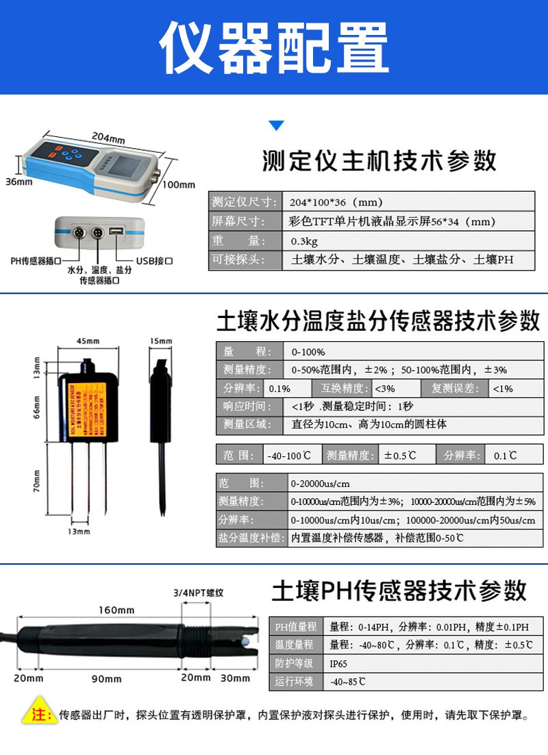 土壤原位插入土壤或浸沒入培養液、水肥一體營養液中直接測試